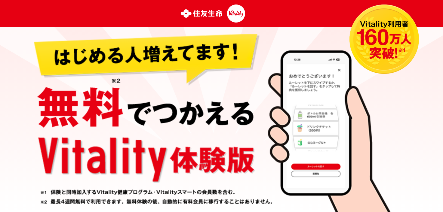 | 【休止中】Vitality体験版 | 500円~ (クーポン) |